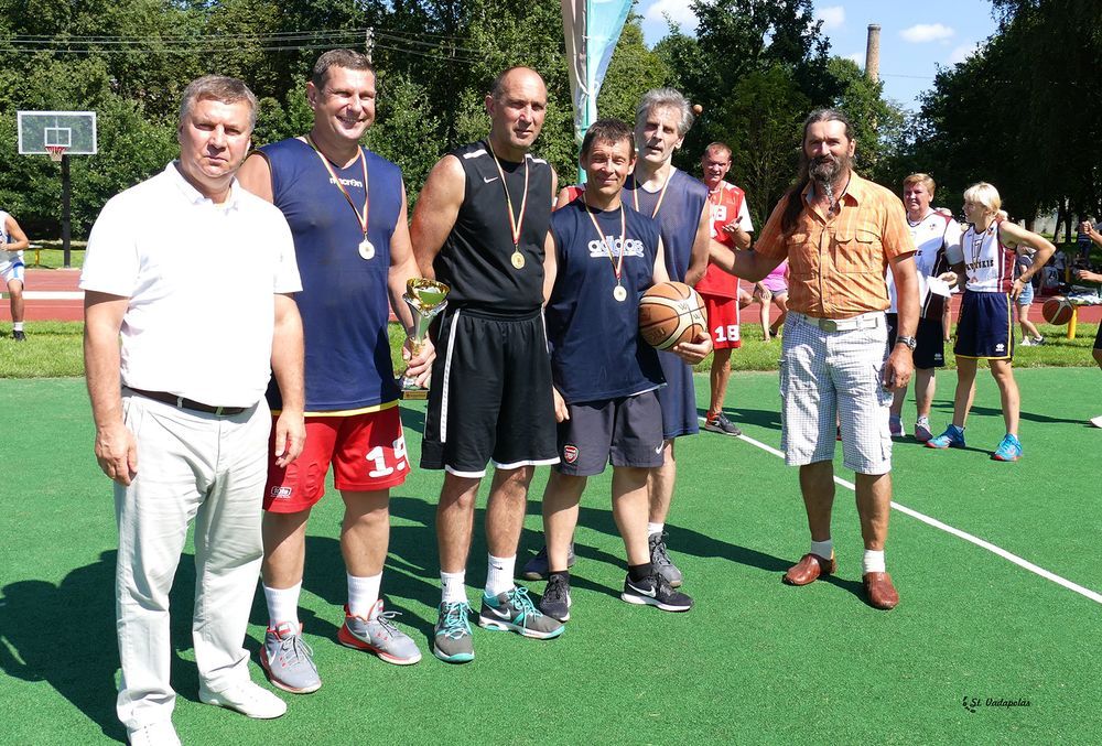 Pirmą vietą užėmę Senjorai su apdovanojimais: Remigijus Sarapas, Darius Vaičiulis, Tomas Brazdžiūnas, Rimas Baradinskas su rėmėju Rytu Vaiginu ir organizatoriumi Vydu Vareika.