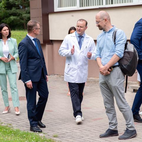 Antradienį Biržuose lankėsi LR Sveikatos apsaugos ministras Arūnas Dulkys ir jo patarėjas Tomas Bagdonas. Delegacija, lydima rajono vadovų, gydymo įstaigų direktorių bei kitų, sveikatos srityje dirbančių atstovų, apžiūrėjo Biržų poliklinikos ir ligoninės patalpas.