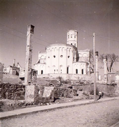 GRIUVĖSIAI: Sudegusi Šv. Petro ir Pauliaus bažnyčia. Fotografas Stasys Ivanauskas, 1944 metai.
