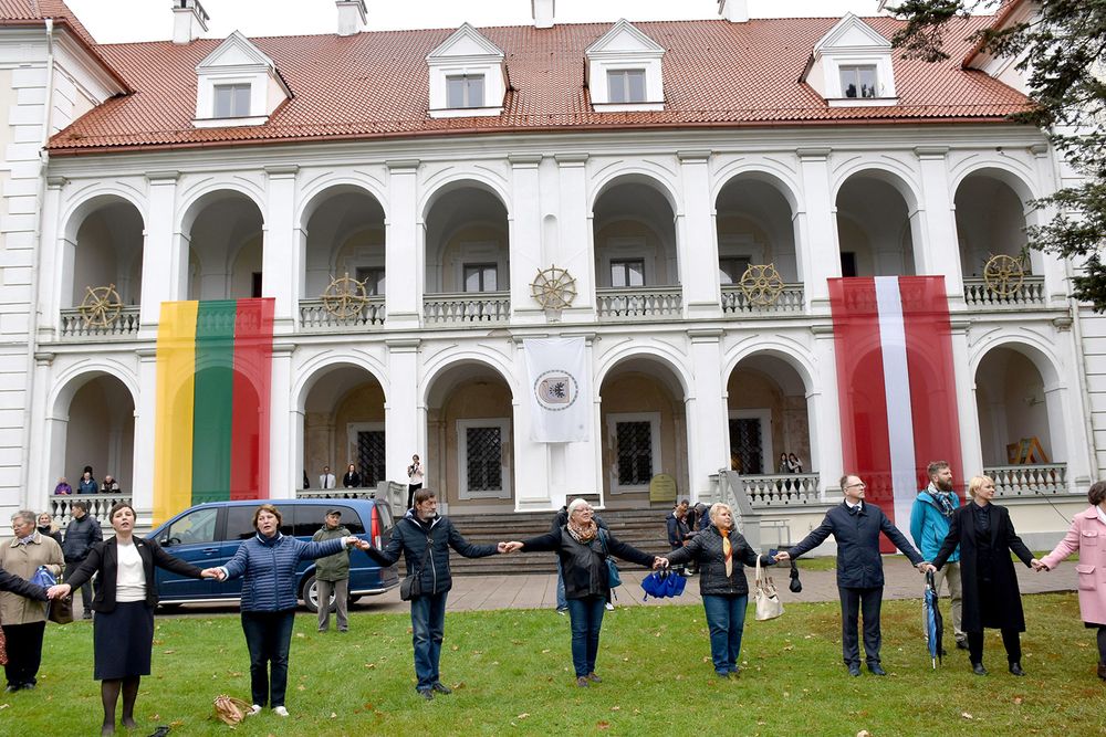 Bal­tiš­kais ženk­lais Rad­vi­lų pi­lį pa­puo­šė Bir­žų tech­no­lo­gi­jų ir vers­lo mo­ky­mo cent­ro flo­ris­tai, di­džiu­les Lie­tu­vos ir Lat­vi­jos vė­lia­vas pa­siu­vo mu­zie­ji­nin­kė Ri­ma Bin­kie­nė su pa­gal­bi­nin­ke.