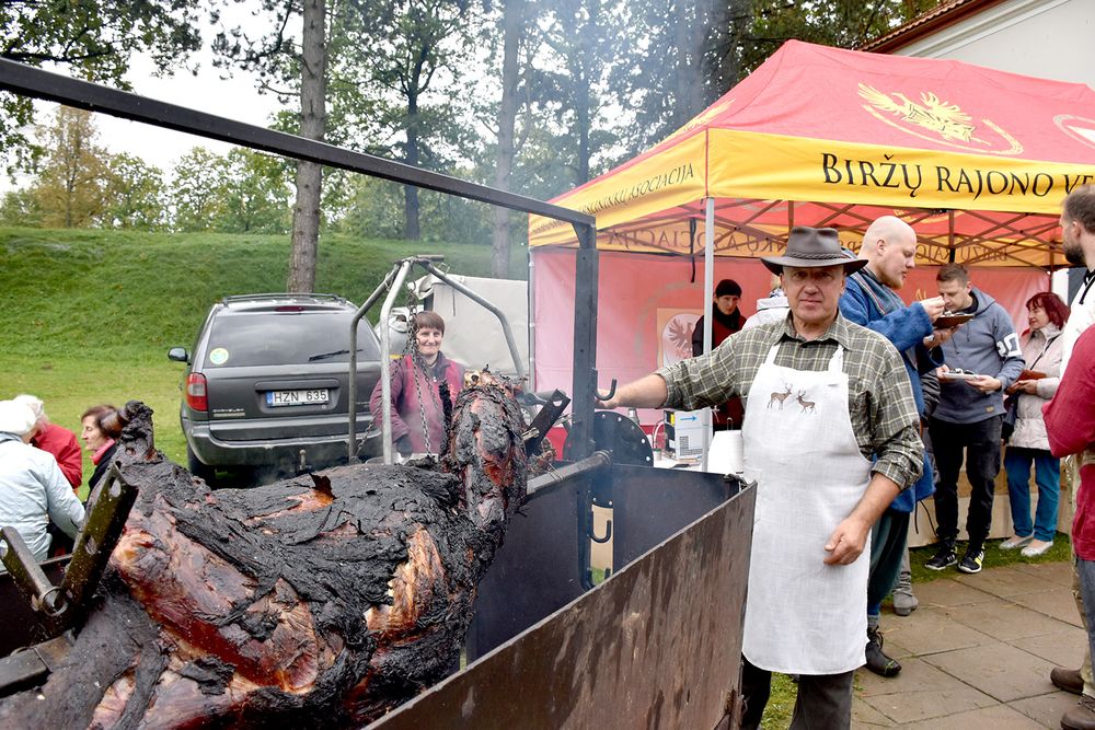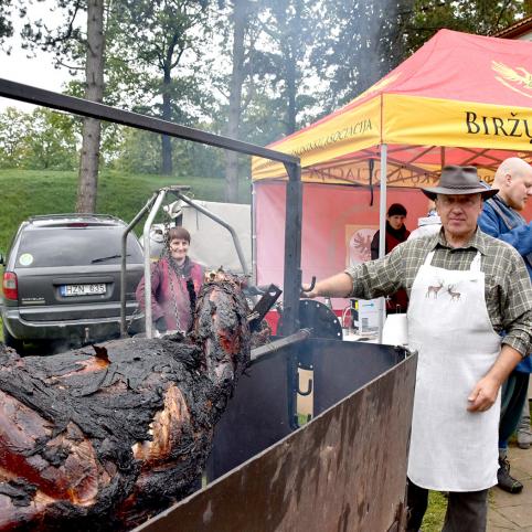 Kir­ki­lų bend­ruo­me­nės žmo­nės kvie­tė ra­gau­ti žu­vie­nės ir ru­pių mil­tų bly­nų. "Vo­lun­gės" ka­vi­nės meist­rai – krau­ji­nių vė­da­rų ir ki­tų ska­nu­my­nų. "Vo­lun­gės" ka­vi­nės šei­mi­nin­kas Bro­nis­lo­vas Juod­vir­šis nuo pat ry­to ant ieš­mo su­ko So­de­liš­kių dva­ro el­ny­no el­nią, ku­rį pa­ts iš­rin­ko, nu­šo­vė ir ma­ri­na­vo. Kep­ti jį te­ko apie 5 va­lan­das. Ant ki­to ieš­mo su­ko­si Mi­li­šiū­nų ūkio avi­nas. Taip pat ne vie­ną va­lan­dą jis bu­vo ke­pa­mas. Pa­mai­no­mis el­nią su­kti pa­dė­jo ir Bir­žų tu­riz­mo in­for­ma­ci­jos cent­ro dar­buo­to­jos.