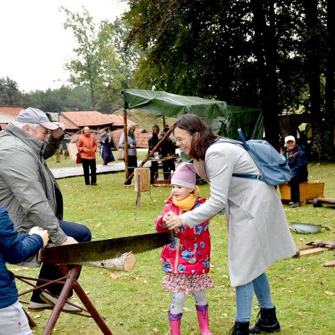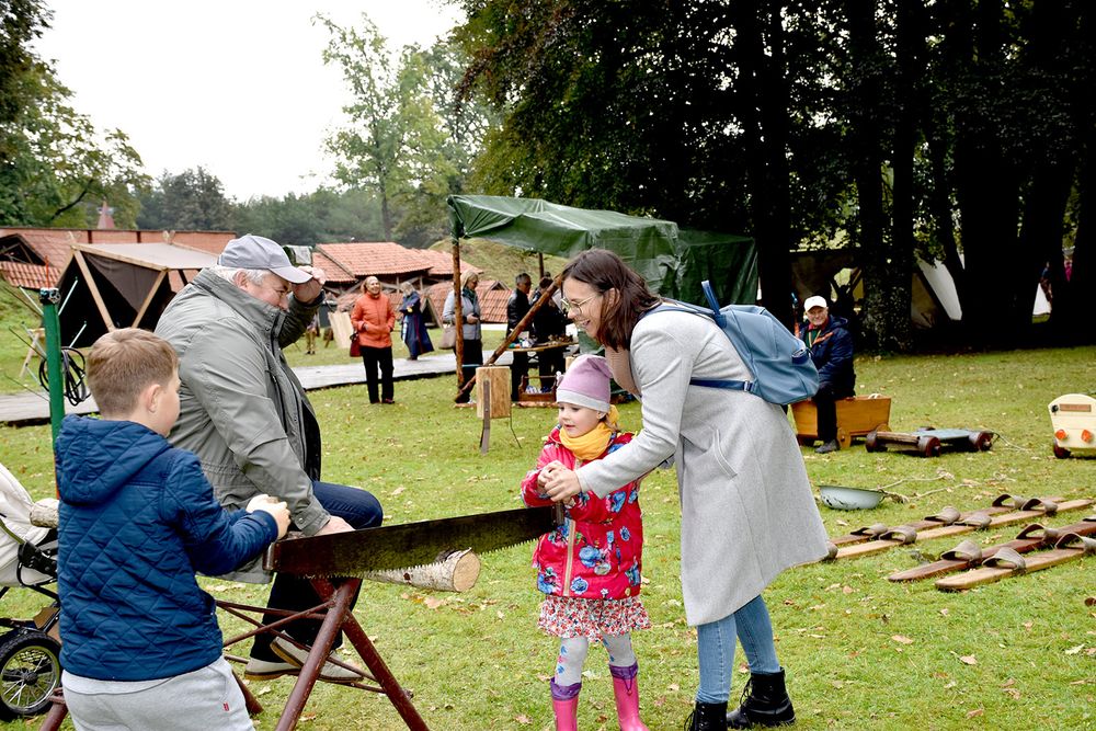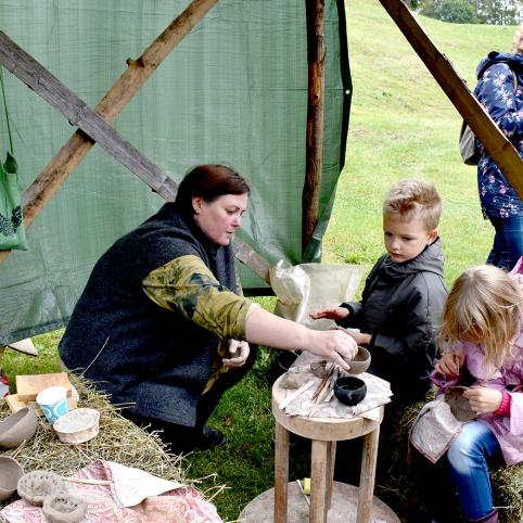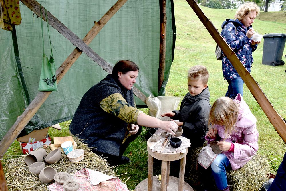 Pi­lies kie­mo erd­vė­je se­nuo­sius ama­tus de­monst­ra­vo iš vi­sos Lie­tu­vos at­ke­lia­vę meist­rai. Bu­vo ga­li­ma pa­si­mo­ky­ti pin­ti, lip­dy­ti iš mo­lio, pa­si­do­mė­ti se­no­vi­niais žve­jy­bos, me­džiok­lės pa­pro­čiais, kal­vys­te, au­di­mu, me­džio dro­ži­niais, pa­dis­ku­tuo­ti su mu­zi­kos inst­ru­men­tų meist­ru, pa­ban­dy­ti su­rai­ty­ti Jo­niš­kie­tiš­kus vir­tie­nius ir juos pa­ra­gau­ti. Iš Rum­šiš­kių at­vy­kę bend­ruo­me­nės žmo­nės siū­lė įvai­riau­sių žai­di­mų: ir bė­gant apie kel­mą vi­nį kal­ti, ir mal­kas pjau­ti, ir ve­ži­mai­čiu pa­si­vė­žin­ti, ir se­no­vi­nius re­bu­sus spręs­ti. Bu­vo ga­li­ma iš­ban­dy­ti ir ris­ti­nes ant šie­no, ku­rias or­ga­ni­za­vo ris­ti­nių ži­no­vai.
