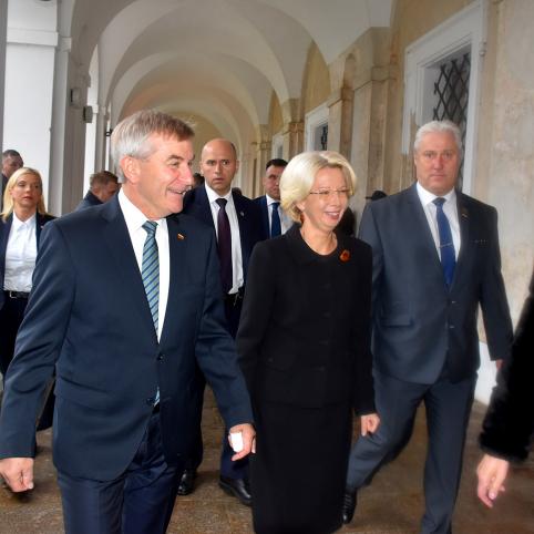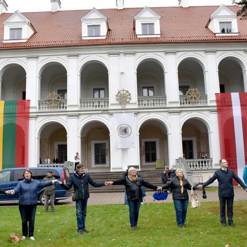 Į Bir­žų pi­lies kie­mą kiek anks­čiau įva­žia­vo Lie­tu­vos Sei­mo pir­mi­nin­ko Vik­to­ro Pranc­kie­čio es­kor­tas, po jo – Lat­vi­jos Saei­mos pir­mi­nin­kės Ina­ros Mūr­nie­cės es­kor­tas. Sei­mo ir Saei­mos va­do­vai Pi­ly­je ap­ta­rė rei­ka­lus, o po to išė­jo į Pi­lies kie­mą ati­da­ry­ti šven­tės.