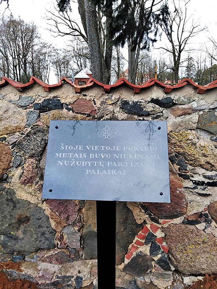 Pas­ku­ti­nią­ją praė­ju­sių me­tų die­ną at­mi­ni­mo len­ta prie Šv. Jo­no Krikš­ty­to­jo baž­ny­čios šven­to­riaus bu­vo pa­sta­ty­ta. Jo­je iš­kal­ti žo­džiai: "Šio­je vie­to­je po­ka­rio me­tais bu­vo nie­ki­na­mi žu­vu­sių par­ti­za­nų pa­lai­kai". At­mi­ni­mo len­tą ke­ti­na­ma pa­šven­tin­ti Va­sa­rio 16-ąją ar­ba Ko­vo 11-ąją.