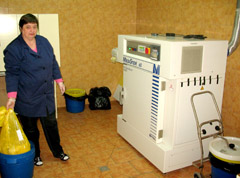 TVARKA: Radviliškio ligoninėje medicininės atliekos pirmiausia nukenksminamos skyriuose, vėliau keliauja į specialiu režimu dirbantį įrenginį (nuotraukoje), kuris jas utilizuoja. Taip apdorotos medicininės atliekos pašalinamos kaip buitinės. Atliekų utilizavimo įrenginį ligoninė, dalyvaudama medicininių atliekų utilizavino programoje, įsigijo už Europos Sąjungos bei pačios medicinos įstaigos lėšas.