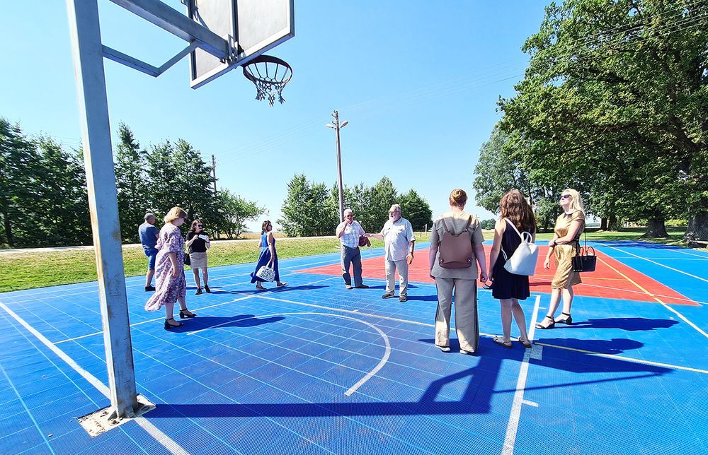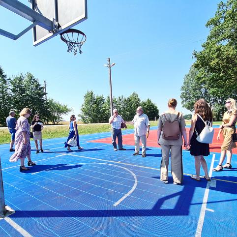 Gaižiūnų bendruomenės pirmininkas Adolfas Jasinevičius, pasitikęs svečius, aprodė ir papasakojo, kaip specialia danga buvo įrengta aikštelė, kurioje jaunimas žaidžia krepšinį, čia yra ir lankai tinkliniui, o netoliese įrengta žaidimų aikštelė mažiesiems, sporto treniruokliai. Projekto lėšų užteko palapinei bei suolams įsigyti.