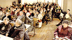 BALSAS: Susirinkimas reikalauja valdžios išklausyti bendruomenės balso: balsuojama, kad visuomenininkų darbo grupės narys būtų deleguojamas kalbėti miesto Tarybos posėdyje.