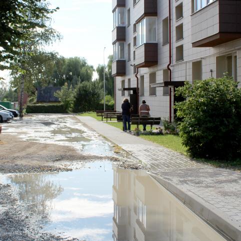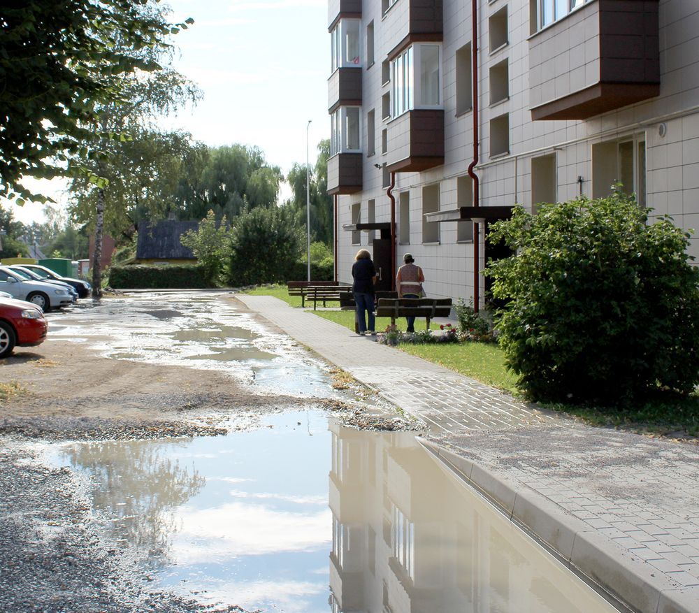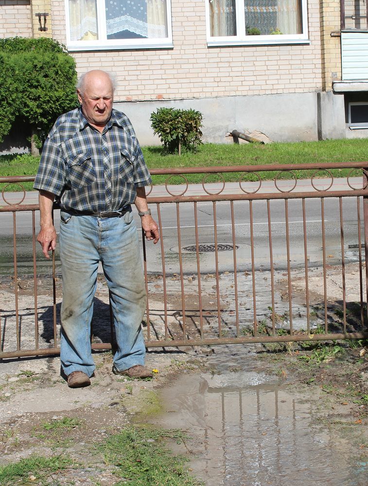 Petras Ladyga pasakojo, jog seniau šaligatvis priminė kalniuką, o dabar po iki galo neatliktų darbų tenka kieme kasinėti griovelius ir stengtis taip vaduotis nuo iš gatvės plūstančio lietaus vandens. Tačiau lyjant tiek daug vandens nebūna, kaip nutiko praėjusį ketvirtadienį.