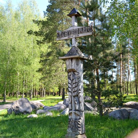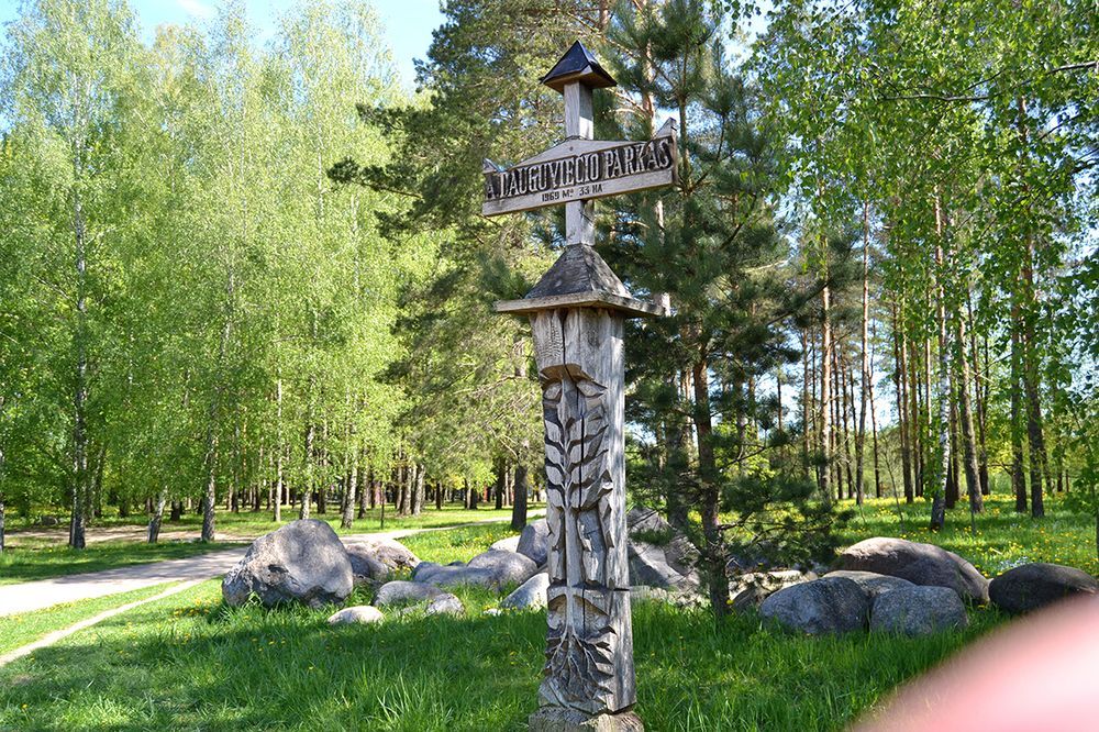 Į parką bandau pažvelgti svečių akimis. Kaip ryškiai žydi eglės. Kur ne kur ant žolės pritiškę neužmirštuolių žiedų ašarėlių. Pakalnučių kvapas – tik prisiminimuose. Užtat obelis prie tvenkinio baltais žiedais apsnigta. Nebe nuotaka. Sengalvėlė. Bus tų spalvų. Prisodinta naujų medelių: beržų, pušų, šermukšnių...