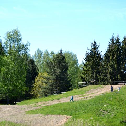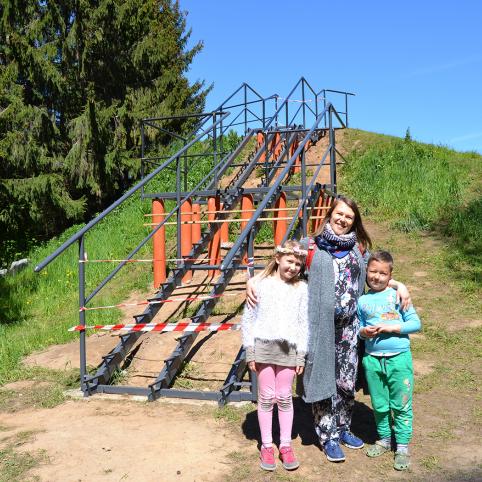 Takeliu nuo treniruoklių šnekučiuodamasi su anūkais ateina biržietė Zinaida. Zinaidos anūkai – iš Vilniaus.