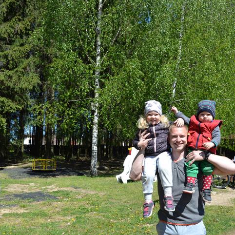 Vaikų žaidimo aikštelėje – jauna šeima. Tėvelis Marius, mamytė Kristina su savo dviem atžalom – Marku ir Migle.