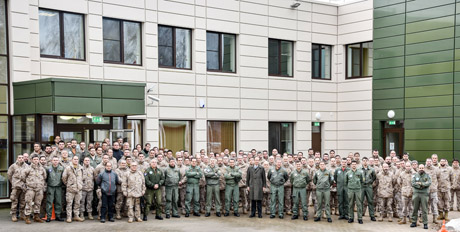 VIZITAS: Ispanijos KOP vadas generolas Francisco Javieras Garcia Arnaizas, jį lydėję dar keturi generolai Aviacijos bazėje Šiauliuose įsiamžino su NATO oro policijos misiją vykdančiais Ispanijos kariais.
