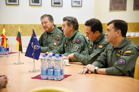 Vakar Lietuvos kariuomenės Karinių oro pajėgų (KOP) Aviacijos bazėje Šiauliuose Ispanijos KOP vadas generolas Francisco Javieras Garcia Arnaizas su delegacija aplankė NATO oro policijos misiją vykdančius Ispanijos karius.