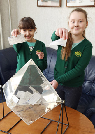 LAIMĖTOJAI: Salduvės progimnazijos 4B klasės moksleivės Kamilė Juškevičiūtė (kairėje) ir Augustė Samulionytė padėjo ištraukti „Šiaulių krašto“ prenumeratorių konkurso laiminguosius.
