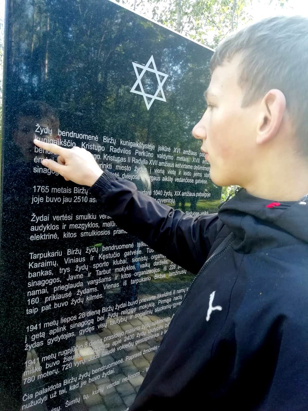 Jau antri metai Pačeriaukštės P. Poškaus pagrindinės mokyklos mokiniai, vadovaujami “Atminties kelio” mokykloje sumanytojo istorijos mokytojo A. Bagdonavičiaus išeina į atminimo žygį, skirtą Žydų genocido dienai paminėti. Žygio pradžioje mokytojas priminė, kokie svarbūs ir laukiami buvo žydai Biržams Radvilų laikais: „Krikščionys prievartos atveju turi ginti žydus taip, kaip pačius save, nes vietiniai žydai yra šio miesto nariai“(K. Radvila 1607 m.). Pirmoji stotelė – Apasčios upės krantas. Atminimo žygio tikslas – aplankyti tas Biržų miesto vietas, kurios dar mena prieš II Pasaulinį karą čia gyvenusius žydus: tai senoji akmens ir plytų mūro vienaaukštė sinagoga, chasidų sinagoga, žydų senelių prieglauda, žydų bendruomenės pastatas – pirtis. Mokiniai patys pasakojo apie kiekvieną žydus primenantį pastatą. Atminimo kelio pabaiga – Pakamponys. Padėję po atminimo akmenuką prie antkapinio akmens, perskaitėme naujai pastatytame memoriale įamžintas žydų pavardes. Supratome, kad holokaustas – ne tik žydų tragedija. Tai – mūsų tragedija, nes netekome šeimų su vaikais, kurie būtų galėję kurti, statyti ar dainuoti.