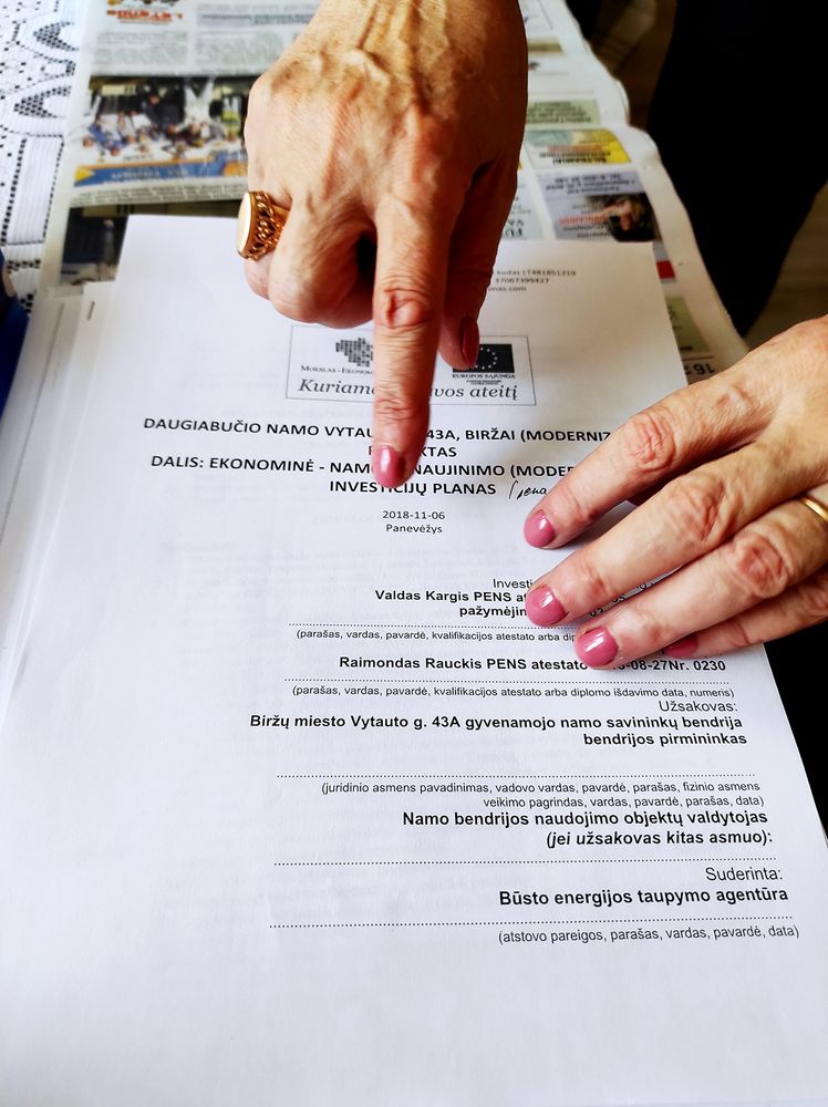 Kodėl 1989 metais statytas penkiaaukštis su 22 butais toks apleistas? Namo bendrijos pirmininkė Genovaitė Mikalajūnienė patikina, kad visi laukia renovacijos, o jos metu bus remontuojamos ir laiptinės, tvarkoma elektros instaliacija. Beje, už vidaus remontą žmonės turės papildomai mokėti, nes renovacijoje šie darbai nenumatyti.