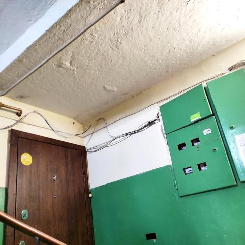 Įspūdis, užėjus į minėtą daugiabutį, kelia šiurpą – sienos pajuodusios, drėgnos, elektros skydinėje voratinkliai, sienomis nuraizgyti elektros laidai... Labiau primena bendrabutį, tačiau čia gyvenantys tvirtina, jog butai priklauso padoriems žmonėms, tik problema, kad niekas nieko netvarko.
