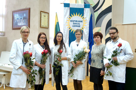 Jaunuosius kolegas pasveikino ir skyrių, kurių jėgas papildė jaunimas, vadovai. Ypač jauna kolege V. Guntaite džiaugėsi Konsultacijų poliklinikos vedėjas Antanas Lukošaitis, nes nepamena, kada paskutinį kartą į kolektyvą buvo atėjęs jaunas konsultantas.