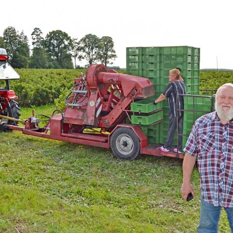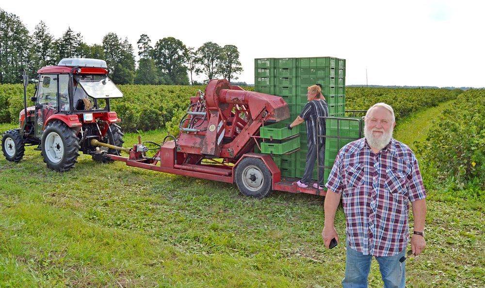 Jasiuliškių uogynuose skinami juodieji serbentai. Ekologinio ūkio savininkas Adolfas Jasinevičius.