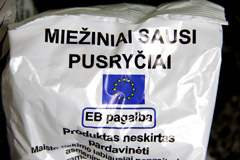 PUSRYČIAI: Pusryčių vaikai nebevalgo nei namuose, nei mokykloje, o šis europinės pagalbos pusryčių pakelis vienam vaikui skiriamas dviem mėnesiams — kasdien po nepilną šaukštą.