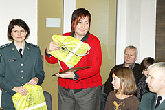 APDOVANOTIEJI: Aktyviausia 2011-ųjų Saugios kaimynystės grupe pripažinta Meškuičių kaimo bendruomenė. Apdovanojimas įteiktas Meškuičių bendruomenės valdybos narei ir Saugios kaimynystės grupės vienai iš iniciatorių Rasai Kelpšienei. Kairėje — Šiaulių apskrities VPK Viešosios tvarkos biuro Prevencijos poskyrio vyresnioji specialistė Rasa Šliavienė.