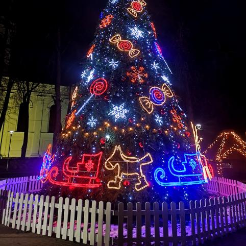 2020 metai – deja, kitokie. Kalėdų eglutės įžiebimo šventės nebuvo. Anksčiau buvo skelbta valanda, kada žaliaskarė sutviskės, o vėliau atšaukta – miesto eglė sužibėjo gruodžio 4 d., bet tyliai, kad būtų išvengta susibūrimų. Eglutę puošė ta pati įmonė, kaip ir pernai, tad ir kaina liko tokia pati – 12 tūkst. eurų. Šiemet eglutė papuošta pasakos motyvais, kad kiekvienas, į ją žvelgiantis, mintimis galėtų nusikelti į vaikystę. Nors šventiniai renginiai nevyko ir Kalėdų senelio įžiebimo dieną nepamatėme, po miestą važinėjo šventinis Kalėdų karavanas, kurio maršrutai ir laikas dėl saugumo taip pat nebuvo skelbiami.