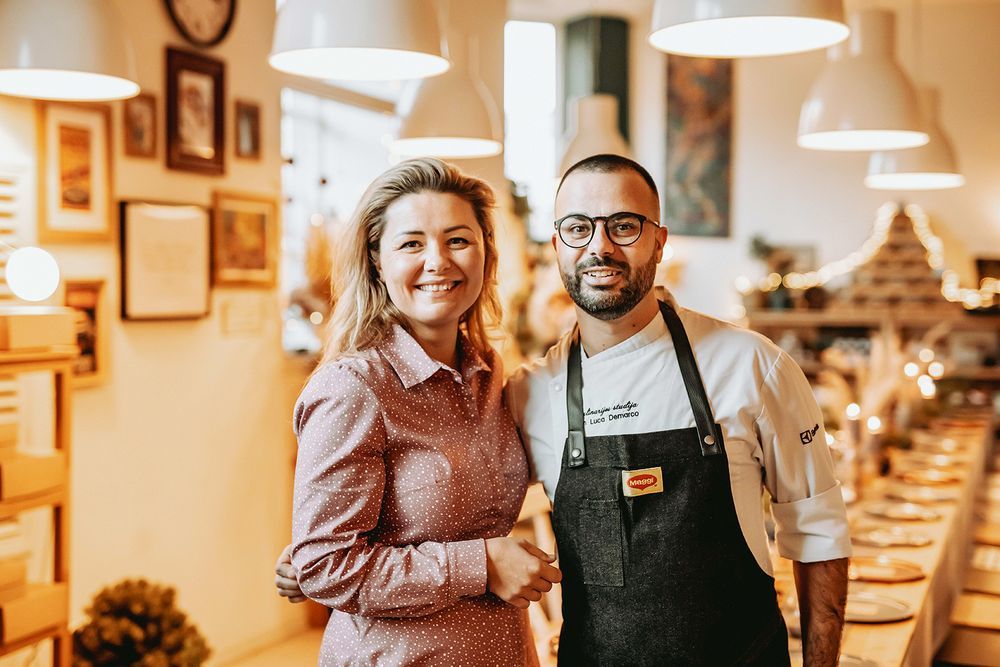 Še­fas pa­ste­bi, kad lie­tu­viai, kaip ir jo tau­tie­čiai, įpras­tai Ka­lė­dų vai­šėms ga­min­ti ski­ria daug lai­ko ir net ne­su­si­mąs­to, kad pa­si­ruoš­ti ga­li­ma ir grei­čiau. Šį ant­ra­die­nį MAG­GI drau­ge su G. L. De­mar­co pa­kvie­tė ge­ram mais­tui nea­be­jin­gas Lie­tu­vos mo­te­ris į ku­li­na­ri­nę po­pie­tę, ku­rios me­tu vi­si drau­ge dis­ku­ta­vo, kaip Ka­lė­dų sta­lą pa­ruoš­ti ne­su­dė­tin­gai ir la­bai gar­džiai.