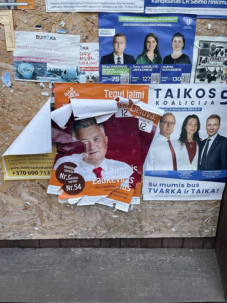 Kad Seimo rinkimai jau čia pat, galima suprasti iš mirgančių kandidatų plakatų. Jais aplipusios ne tik skelbimų lentos, bet ir autobusų stotelės, net medžių kamienai, pašto dėžutės, parduotuvės, daugiabučių laiptinės ar net gyvenamų namų sienos. Kaip ir kiekvienų rinkimų metu, politikai skundžiasi, kad jų plakatai draskomi – konkurentai niekaip neįsitenka vienoje erdvėje.