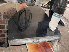 ŠVENTVAGYSTĖ: Paminklo dalį, nuluptą nuo dukters kapo ir nutemptą už kapinių tvoros, savininkei teko gabenti į namus.