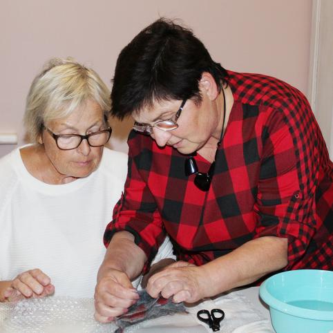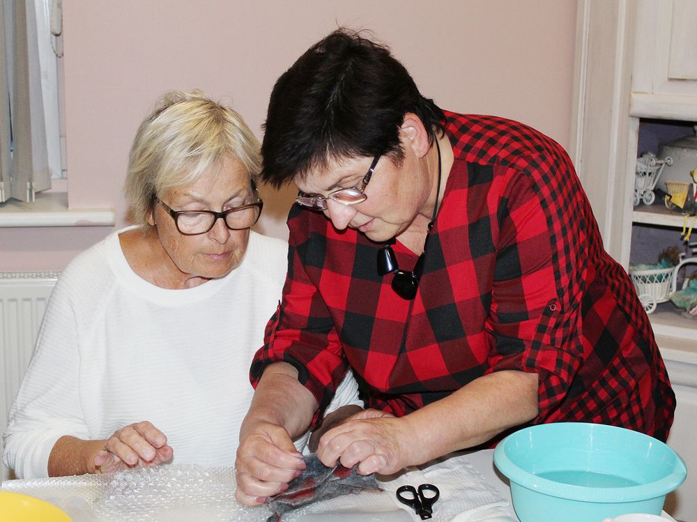 Praėjusį antradienį būrelis projekto dalyvių plušėjo, vadovaujami Vandos Taujanskienės ir Vitos Kiseliūnienės. Joms talkino meistrė iš Vabalninko, tautodailininkė Zita Kumpelienė.