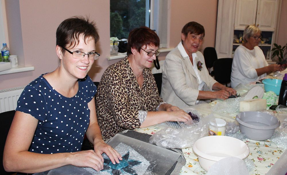 Moterys rodė jau baigiamas kurti sages iš veltos vilnos, džiaugėsi įvaldę ir papjė mašė techniką ir dabar galinčios ne tik pačios pasipuošti, pamaloninti artimuosius, bet ir pasigaminti lengvų ir gražių dirbinių namams. Papjė mašė (kramtytas popierius) technika, pasak meistrės Vitos Kiseliūnienės, iš popieriaus masės daryti trimačius erdvinius daiktus egzistavo nuo pat popieriaus atsiradimo laikų. Naudojantis šia technika sukurti darbai yra lengvi, atrodo natūraliai. Projekto dalyviai labai pamėgo kurti paukštukus, augalinės formos indus – lapus. Taip pat pabandė formuoti angeliukų galvytes. Pasak papjė mašė meno susirinkusiuosius mokiusios Vitos Kiseliūnienės, projekto dalyviai noriai lanko užsiėmimus, mato savo darbo rezultatus ir jais yra patenkinti.