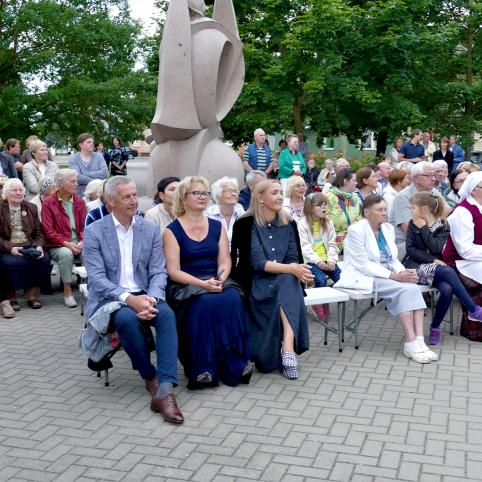 Susirinkusiuosius pasveikino, gražios šventės linkėjo Vabalninko seniūnas Laimutis Braždžionis ir svečias profesorius Algirdas Raslanas. Vabalninko krašto kultūros ir istorijos fondo narys Algirdas Garbauskas šventės dalyviams priminė, kad fondo nariai, pritariant visuomeninių organizacijų atstovams, dar šį pavasarį nutarė „Lino žiedo“ žymenį skirti Vabalninko Balio Sruogos gimnazijos mokytojai Zitai Kumpelienei.