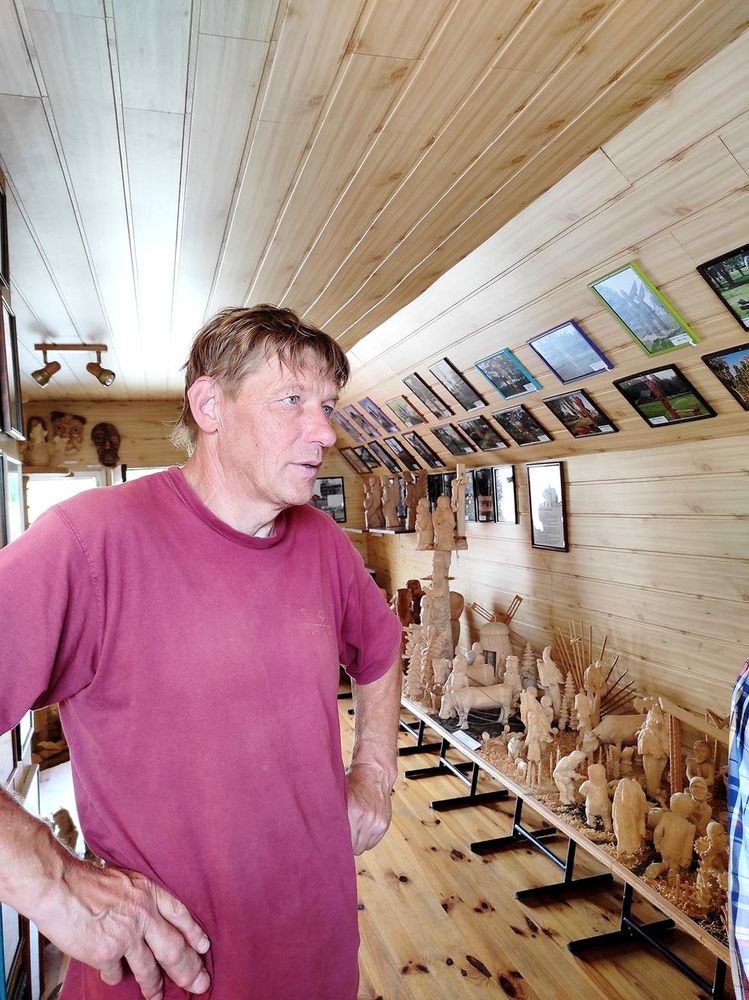 Kiekvienas darbas – nuo mažiausio, iki sudėtingiausio, atpasakojančio žmogaus gyvenimą ir veiklas – sušildytas meistro rankų ir širdies. Beje, prie Biržų pilies yra koplytstulpis, kuriame pavaizduota visa šio krašto istorija. „Ten yra ir bažnyčia, ir pilis – specialiai važiavau skaičiuoti, kiek pilyje yra langų, kad tiksliai būtų pavaizduota“,- pasakojo auksinių rankų meistras. Mažiausiai dešimt jo darbų iškeliavę į kitas šalis – Ameriką, Prancūziją, Škotiją, Belgiją, Graikiją, Vokietiją...