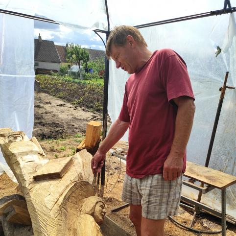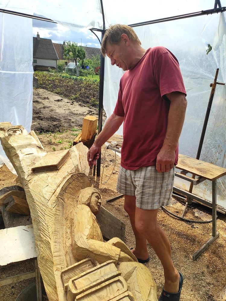 Kūno kultūros mokytoju dirbantis vyras medį drožia vakarais ir naktimis. O jeigu gali dirbti dienomis, tai iš namų devintą valandą išeina ir aštuntą sugrįžta. Jis sako, kad medis – gyvas, todėl gali suskilti ir to išvengti neįmanoma. Kiti meistrai bando užglaistyti įskilimus, tačiau Vidas jokių papildomų priemonių nenaudoja. „Džiovinti medžio nėra prasmės, nes, pavyzdžiui, nupjautas ąžuolas per metus išdžiūsta tik apie vieną centimetrą. Yra technologijos, kurias pritaikius, medis gali neskilti, bet procesas labai ilgas“,- patikina meistras.