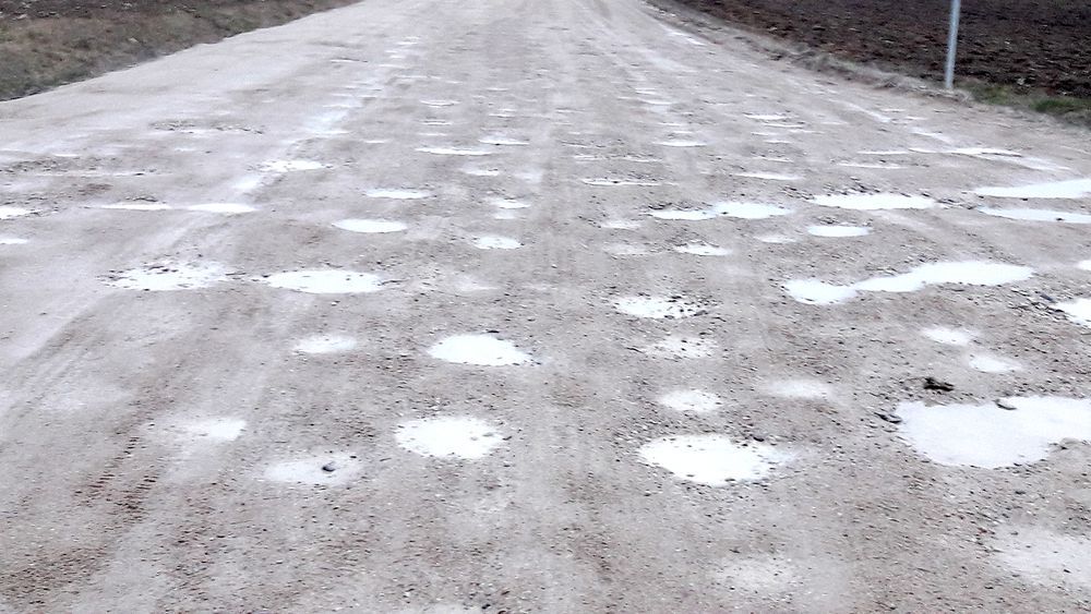"Va­sa­rio 16-ąją, Lie­tu­vos vals­ty­bės at­kū­ri­mo die­ną, va­žia­vau į gim­tuo­sius An­čiš­kius ap­lan­ky­ti ar­ti­mų­jų. Ke­lio Va­bal­nin­kas-An­čiš­kiai žvyr­ke­lio at­kar­pa nuo as­fal­tuo­to ke­lio po­sū­kio iki kai­mo bu­vo bai­si: duo­bė prie duo­bės, pa­kraš­čiai pa­vo­jin­gai nu­va­ži­nė­ti no­rin­čių­jų iš­veng­ti duo­bių, bet iš­veng­ti duo­bių neį­ma­no­ma, nes vi­sas ke­lias vien duo­bės.
