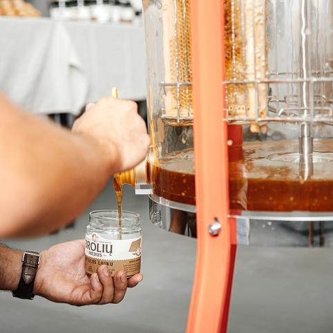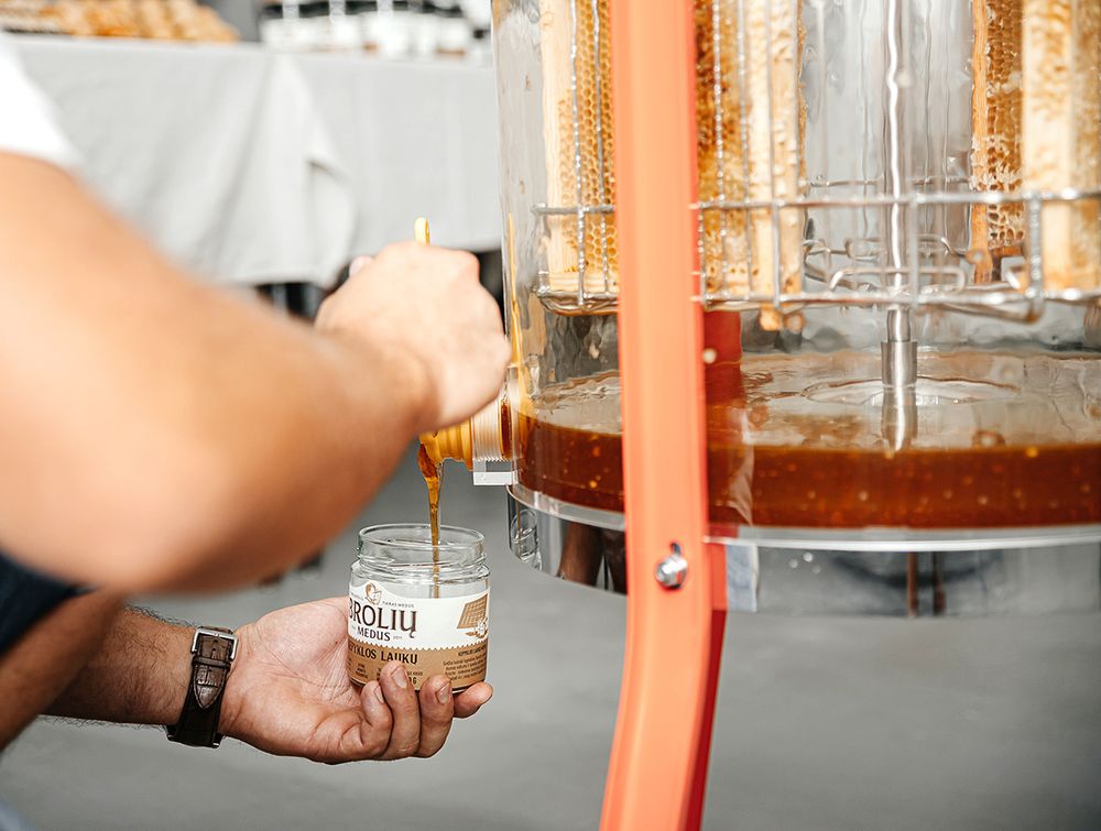 Pasirodo, kad ne tik skanų, bet ir gausų – viena bičių šeimyna per sezoną vidutiniškai prineša apie 70 kilogramų medaus. „Kepyklos fabrikas – miesto pakraštyje. Aplink laukai, netoli miškas, ideali vieta bitėms. Jos prineša ir liepų, ir pavasarinio medaus, tad jo netrūksta nuo gegužės iki rugpjūčio vidurio. Mes užtikriname avilių priežiūrą, o surinktą medų, su visais koriais, gabenamės namo, išsukame ir parvežame atgal į Biržus, o iš ten medus iškeliauja į „Biržų duonos“ krautuvėles po visą Lietuvą“,- pasakojo V. Jackevičius.