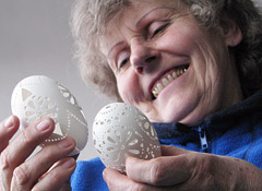 Alkiškiuose gyvenanti „Šiaulių krašto“ prenumeratorė Aldona Tenienė nėra girdėjusi, kad kas nors kitas šalyje stomatologijoje naudojamais grąžtukais gręžioja kiaušinių lukštus, kaip ji, ir sukuria meniškus dirbinius. Kaip tai pavyksta?