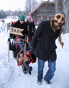„TAKSI“: Populiari transporto priemonė buvo “taksi“ — persirengėlių stumiamas ir traukiamas karutis.