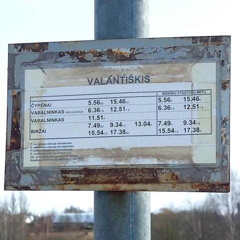 Į redakciją kreipėsi Biržų miesto gyventoja, kuri piktinosi, jog prie Biržų miesto esančioje Valantiškio kaimo autobusų stotelėje prikabinta lentelė su grafiku yra klaidinga – laikas neatitinka, o kitoje kelio pusėje prie stotelės išvis nėra jokios lentelės, kurioje būtų užrašyta, kada važiuoja autobusai. Biržų autobusų parko direktorius Marius Šernas patikino, kad naujasis grafikas buvo nuplėštas, o artimiausiu metu, senos lentelės bus pakeistos naujomis.