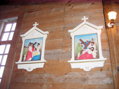 STACIJOS: Koplyčios stacijas-Kristaus kelio stočių paveikslus- restauravo dailės mokytoja Lina Užomeckienė.