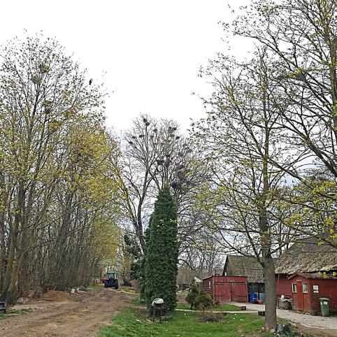 Varninių šeimos paukščiai, pasak A. Simonaičio, jo kieme karksi jau ketvirtus metus. Vyras sako prie šių garsų pripratęs. Nebeerzina jo ir tai, kad paukščiai dergia kiemą. „Iš pradžių buvo keli lizdai, o kasmet jų vis daugėjo. Visi gudrūs mane pamokyti, kodėl nieko nedarau – o kaip jums atrodo, ką aš galiu padaryti? Jos nieko nebijo. Nebijo nei besiganančių gyvulių, nei technikos burzgimo. Pastebėjau, kad jos trumpam išskrenda, kai įsjungiu lapų pūstuvą, bet kas iš to – kai išjungiu, jos kaipmat vėl suskrenda“,- teigė ūkininkas. Tiesa, vakarop paukščių triukšmas nurimsta iki... ankstyvo ryto.