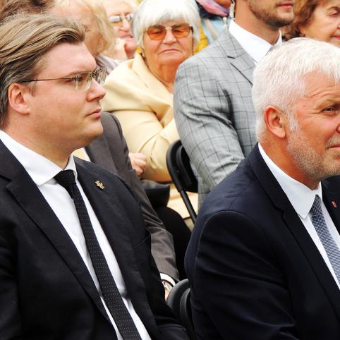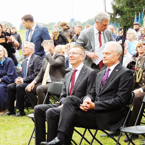 Netrukus po senovinės technikos rikiuotės į Kryžių slėnį atvyko Lietuvos ir Latvijos prezidentai – Gitanas Nausėda ir Edgaras Rinkevičius.
