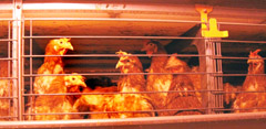 Daugiau kaip100 tūkstančių paukštyno dedeklių gyvena 160 centimetrų pločio 242 centimetrų ilgio ir 60 centimetrų aukščio „nameliuose“ už grotų. Mūsų aplankytoje fermoje viename tokiame perpus padalintame narve gyvena 40 vištų ir kiekvienai iš jų tenka po 960 kvadratinių centimetrų ploto.