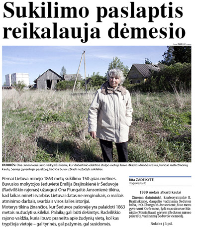 Praėjusį šeštadienį „Šiaulių kraštas“ spausdino žurnalistinį tyrimą „Sukilimo paslaptis reikalauja dėmesio“ (2014-05-24), kuriame pasakojome apie liudijimą, kad Šeduvos pašonėje gali būti palaidoti 1863 metais nužudyti sukilėliai. Palaikų gali būti dešimtys.