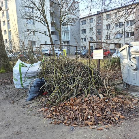„Vytauto gatvėje, prie 39 B namo, didžiulė šakų krūva stovi dar nuo pavasario. Tai sniegas tuoj tą krūvą užsnigs, taip ir gulės tos šakos iki pavasario? O lapai aplink konteinerius? Kodėl jų niekas nesugrėbia? Vėjas nešioja po kiemus“,– piktinosi viena Vytauto gatvės Biržuose, daugiabučio, gyventoja. Ji sakė nesuprantanti, kas iš tikrųjų turi viską sutvarkyti ir išvežti šakas.