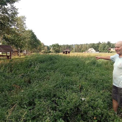 Mieliūnų kaimo gyventojui Mykolui Bieliakui kasdien matant žolynais baigiantį užželti parkelį skauda širdį dėl vėjais paleistų mokesčių mokėtojų pinigų.