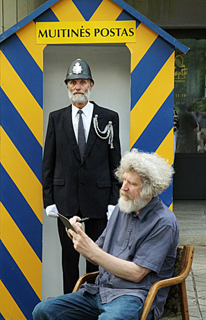Įėjimą į menininkų respubliką „Laiptų“ galerijos sode riboja pusiau pakeltas užtvaras. Kantriai, nepakrutindamas nė vieno veido raumens ir barzdos plauko, prie muitinės posto stovi muitininkas.