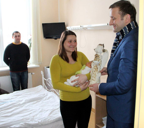 SVEIKINIMAI: Vakar Šiaulių meras Artūras Visockas Moters ir vaiko klinikoje pasveikino sausio 2-ąją šiauliečiams Kristinai ir Pavelui Trifanovams gimusią mažylę.