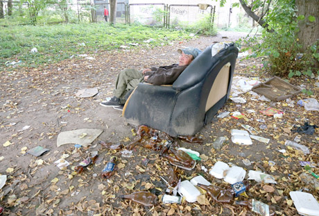 Penktadienio popietė Šiauliuose. Už vieno daugiabučio jaukioje medžių paunksnėje ant nudriskusios sofos sėdi du lengvai įkaušę vyriškiai. Aplinkui mėtosi gausybė plastikinių butelių, užsilikusių iš tų laikų, kai buvo nesuperkami.