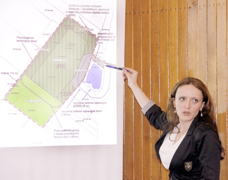 PLANAS: Projektuotoja Eleonora Grablevskienė rodo planuojamą įvažiavimą į kapines iš aplinkkelio. Įvažiavimas į greta esantį privatų sklypą būtų numatytas techniniame projekte.